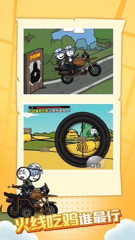 火柴人火线吃鸡是一款以火柴人为主角的大逃杀类型动作游戏。玩家将扮演一名在度假时遭遇不测的火柴人,被迫参与一场生死角逐,唯有成为最后的幸存者方能逃脱。游戏场景涵盖经典战场元素,玩家需在地图中搜寻三级头盔、三级甲等高级战术装备,并可根据自身策略选择主动进攻或隐蔽生存的战术路径。