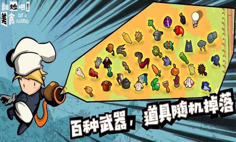 1. 游戏突破传统射击框架,实现食物与武器的概念融合,玩家可自由调配八大菜系及网红菜式,形成具备特殊战斗加成的菜品套装。