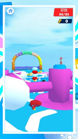 1、美术团队肯定嗑了彩虹糖!热带落日把橡胶小人照得像QQ糖,瀑布水花溅起来都是马卡龙色系的,连Game Over界面都飘着棉花糖云朵——这游戏根本是视觉版的多巴胺喷射器。