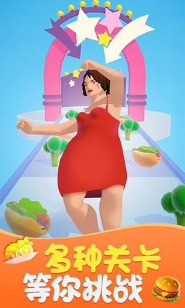 最近我发现了一款超有意思的跑酷游戏,绝对能让你玩到停不下来。画面是那种超可爱的3D卡通风格,主角是个正在努力减肥的萌妹子,你要帮她在赛道上狂奔,一边躲开那些诱人的高热量美食,一边收集健康食品和健身器材。最棒的是你能亲眼看着角色慢慢变瘦,最后华丽变身!