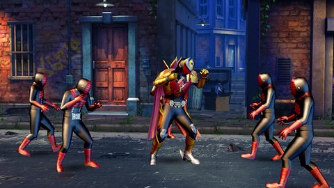 2、战斗系统深度还原特摄剧经典招式,包含超过200种技能组合。精确的帧数判定机制确保连招系统的严谨性。