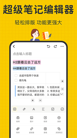 尽情发挥创意,轻松排版,字间距、字号控制自如,极大满足您对笔记的多样需求。