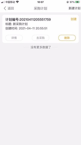 3、采购计划管理堪称手残党福音!每个计划都像带了三把瑞士军刀,查看详情、一键采购、秒删计划,行云流水般的操作比德芙还丝滑。