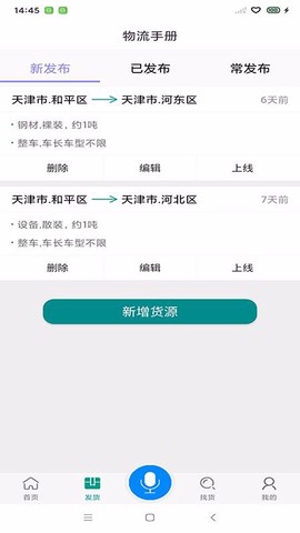 3、能够迅速新增货源,进入发货中心查看新发布的货源并点击新增非常简单。