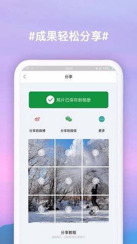 4、分享功能极其便捷,无论是分享到微博还是微信,轻松搞定,让你的作品瞬间与朋友们见面。