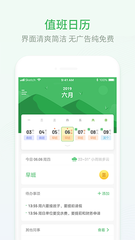3、这儿聚集了来自医疗行业的医生护士、电力行业的运维人员,以及钢铁厂、化工厂、安保、客服、警察、地铁、高铁、航空等众多行业的精英。我们的软件还整合了提醒事项、日程管理、闹钟、万年历、天气和备忘录等常用功能,使用起来方便又高效,简直是每位倒班值班者必备的工具软件。
